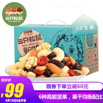 二、【小欢喜同款】三只松鼠休闲零食每日坚果750g_30天混合果仁大礼包孕妇山核桃仁榛子仁干果礼盒 家庭款(30天装)