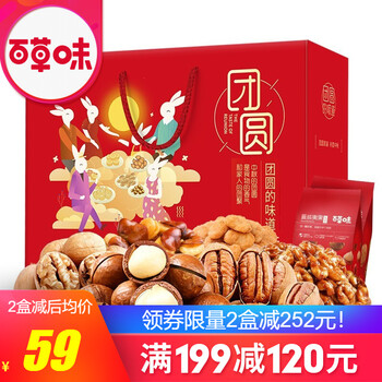 五、满199减120_百草味 坚果大礼包1378g/8袋 每日坚果礼盒 休闲零食干果 MJ
