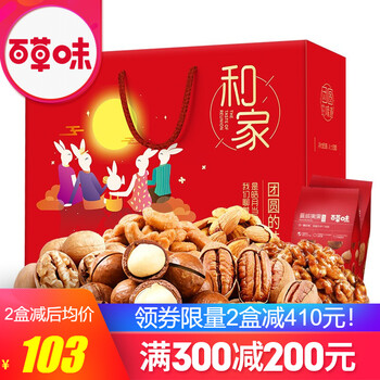 四、满300减200_百草味 坚果大礼包1718g 每日坚果礼盒 夏威夷果碧根果等 MJ 3款包装随机 10袋装