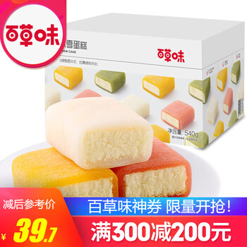 七、满300减200_百草味 冰雪蛋糕1080g 网红休闲零食麻薯夹心整箱早餐面包 MJ 540gx2盒